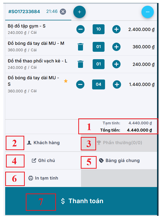 - (7) – Thanh toán: nút thanh toán đơn hàng.