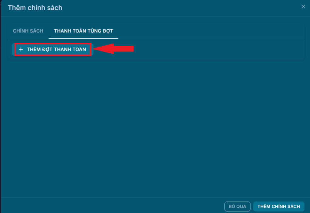 Tại Thanh toán từng đợt => chọn Thêm đợt thanh toán