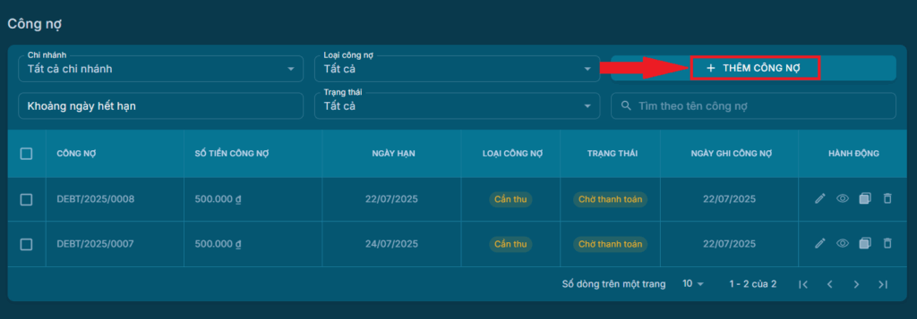Sau khi đã điền đầy đủ thông tin, bạn bấm vào THÊM CÔNG NỢ.