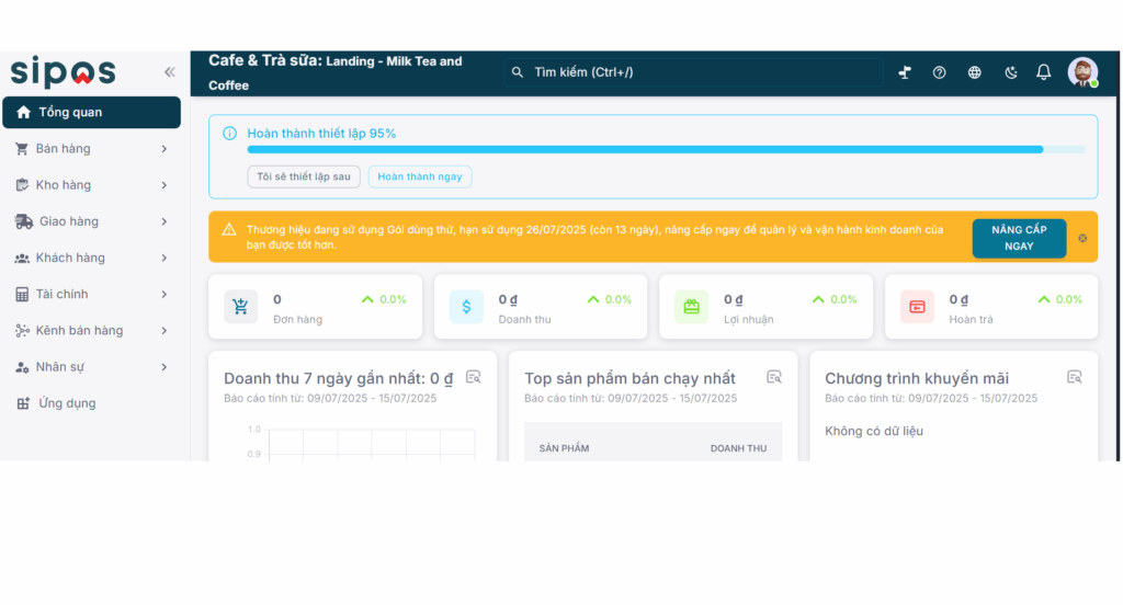 Đối với tài khoản mới: tài khoản mới được tạo sẽ chưa có Thương hiệu, nhấn nút TẠO THƯƠNG HIỆU