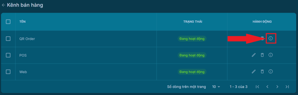 Tại danh sách kênh bán hàng bấm vào icon hình chữ i trong logo tròn để xem chi tiết thông tin và hướng dẫn sử dụng của từng kênh bán hàng